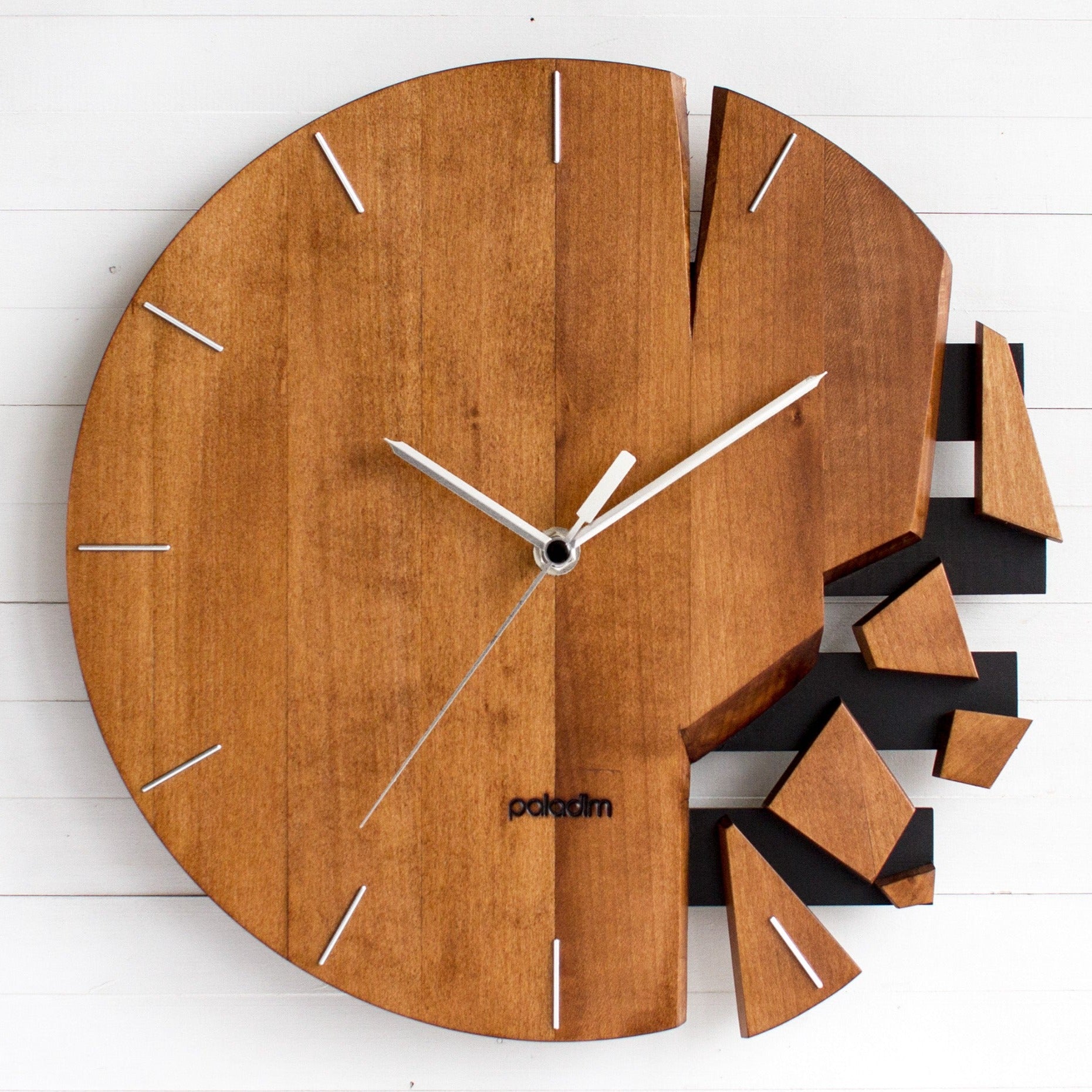 SIZE & SPECS • measures 30cm (12”) in diameter (can be made in larger sizes - 40cm/16" or 60cm/24")• stained linden wood finished with satin varnish• aluminium hour dials• silent mechanism (AA 1.5V battery)